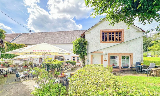 This holiday apartment is centrally located in the Eifel, near the famous Vulkan lakes. With its various rivers and dense forests, this region is fantastic for endless walks. In the middle of this natural beauty, you will find a bistro, where this apartment can be found. It is located on the first floor and has a spacious living room. You can have breakfast or dinner here at a local rate. Dogs are very welcome. There is also a cozy beer garden