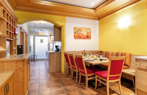 The spacious holiday apartment in the Schweizerhof with Finnish sauna and IR cabin offers plenty of comfort with 3 bedrooms, a kitchen-cum-living room and a wood-panelled living room in typical Tyrolean style and is fully furnished. A Swedish stove spreads cosiness and after a strenuous day's skiing you can relax in the sauna. In the spacious eat-in kitchen you can enjoy your prepared meals at the large dining table. What more could you want?