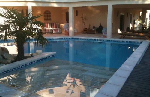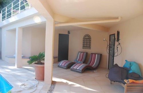 In the heart of a pinetree forest , tastefully decorated, with a large terrace , a veranda, à Nice pool with a deck , this house is dedicated for 2 families Ideally situated in 4km of Aix-en-Provence, right in the heart of the massif of the Holy victory, in the peace, none face to face, completely renovated on 2011, south exposition , 1 terrace of 100 m2 in the rdc, 1 beach(range) swimming pool in teak and a loggia .2 Dining rooms outside with garden furnitures. Pool maintenance included. 2 friendly and independent cats are present and fed by the cleaning lady.