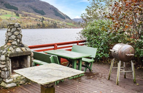 In this wonderful house right on the Vindafjord you can really live. You can expect a spacious conservatory next to the beautiful terrace with barbecue and seating in front of the fabulous scenery of the fjord. Here you will spend long summer evenings together. If the weather doesn't cooperate, you can retreat to the cozy living room with its typical fireplace and spend your time reading, playing board games or having lively conversations.