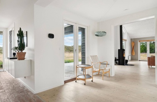 The house welcomes you in the middle of the beautiful Nortjutland landscape surrounded by trees. Enjoy meals against a magical backdrop thanks to large windows and cozy evenings with your loved ones. Fire up the fireplace in the evening and enjoy the cozy atmosphere.