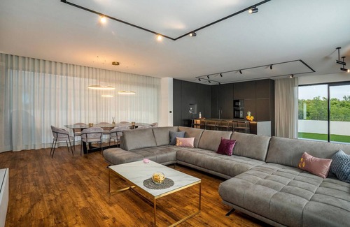 Villa Staza Valova is a luxurious villa where you can enjoy a panoramic view of the sea while you get a nice tan on one of the 8 sun loungers or cool off in the private infinity pool. If the sun gets too hot, you can enjoy the view in the shaded lounge area while sipping refreshing drinks. Your children can run around and play in the garden and the outdoor dining table for up to 8 people is perfect for an evening barbecue after a long day at the beach. Through the glass patio doors you enter the living room with a large comfortable couch and a TV. In the same room there is also an elegant kitchen and another dining table for up to 8 guests. On this floor there is a comfortable double bedroom with TV and en-suite bathroom. One floor up there are 3 more comfortable double rooms, each with its own TV and bathroom. The sea-facing rooms offer a panoramic view that you can enjoy every morning when you wake up. The large balcony is perfect for enjoying your coffee in the morning sun. Villa Staza Valova is the perfect choice for a luxurious experience for you and your family and friends. Villa Staza Valova is only 750 meters from the beach and within 2 km from the necessary amenities such as the nearest restaurant, café and store. Only about 15 minutes away you can spend an entertaining day in Crikvenica. Here you and your family can visit an adrenaline park or enjoy the breathtaking sea view from the Ferris wheel. Not to mention the beautiful beaches of Jadranovo and Crikvenica. The city of Rijeka is only 30 minutes away and is perfect for a day trip. Explore Trsat Castle and enjoy a meal in the courtyard, which has been converted into a restaurant. For a more modern activity, visit an exhibition at the Museum of Modern and Contemporary Art or the Computer Museum.