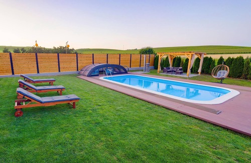 Dive into the spacious pool or enjoy the rural atmosphere under the stylish pergola. Look forward to cosy evenings with family or friends on the covered terrace with barbecue area.