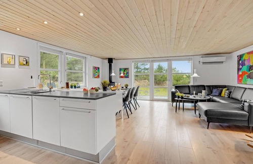 Enjoy the ambience of this beautiful wooden vacation home. It is with its heat pump on environmentally friendly. It is located in the north of Rømø and is a good base for guests interested in the bird life of the island. The island is part of the Wadden Sea National Park and fascinates with its species-rich nature. Guides offer guided tours of the wildlife. So experience the habitat of crabs, fish, seals and birds up close.