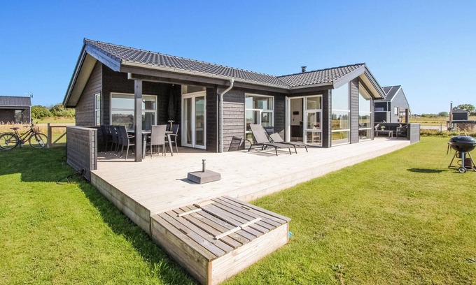 Let yourself be enchanted by the view of the sunset over the hills of Nordby and enjoy the wide, unobstructed view over the fields surrounding this child-friendly vacation home during the day. Make yourself comfortable with the whole family in the bright and modern rooms, vacation relaxation almost sets itself in this setting. Follow the position of the sun on the terraces of the house, close your eyes or read a book, while your children whizz around the property and have fun on the swing and in the sandbox. End a wonderful vacation day together with food from the grill!