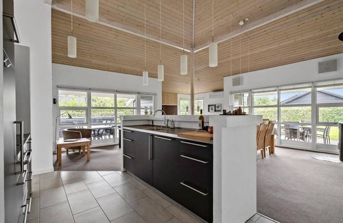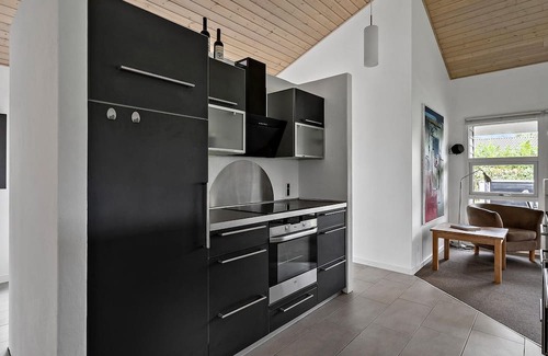 This holiday home near the fjord promises you a comfortable holiday. Friendly, light-flooded rooms and a warm wooden look create a carefree atmosphere in which you can chat, watch TV or play a game of table football to your heart's content. The modern kitchen invites you to cook together and if you long for cosy warmth, you can spend relaxing hours in the sauna.