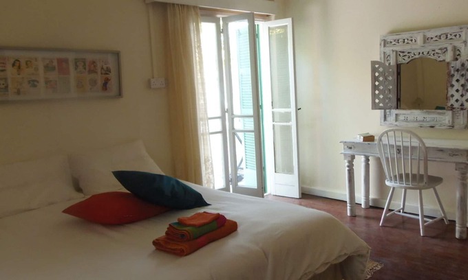 These charming room is in a spacious old typical 4 bedroom Cypriot house, 220 sqm, surrounded by a big yard full orange and lemon trees and a garden full of flowers. It is located in a quiet and safe neighborhood where you can find everything around in a walking distance: supermarkets, bakeries, kiosks, restaurants, traditional taverns, pharmacies, etc. Down town is only 2.5 Kms away, 5 minutes by car or bus and 20 minutes walking. The bus station is just one minute walk (50meters) from the house