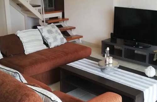 Cozy apartment in a quiet area in a village near to the sea. Lot of restaurants and cafes around. The distance from the sea is less than 10 minutes walk. With nice view from the front balcony to a small park.