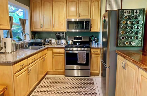 We have a TON of indoor/outdoor space, including a redwood deck w/gas fire pit and outdoor dining area, super fast mesh WiFi throughout (accessible in yard/deck too!), gourmet kitchen, full size private laundry, smart TV, we are pet friendly AND we are only 2 blocks to BART. This location is so convenient - you could easily choose a car-free stay; especially since we are less than two blocks from a bike sharing station and there are always Lime/Lyft scooters available at the BART station. Additionally, there are rental or car share opportunities within blocks.