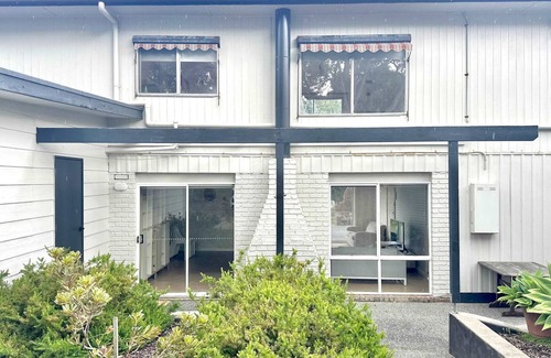 You access upstairs through a semi covered stair case, anyone with mobility challenges should consider using the bedroom on ground floor as there is no bathroom on the upper level. The stairs can get wet in wild weather and this property is priced accordingly. You will need to use the stairs to access the kitchen on the second floor. On this level there is a fully equipped kitchen with a dishwasher, coffee machine and microwave, a dining area with split system, one bedroom with queen size bed, one bedroom with a double bed. There is a balcony with a gas barbecue.