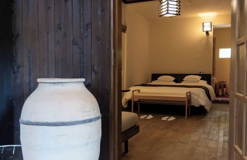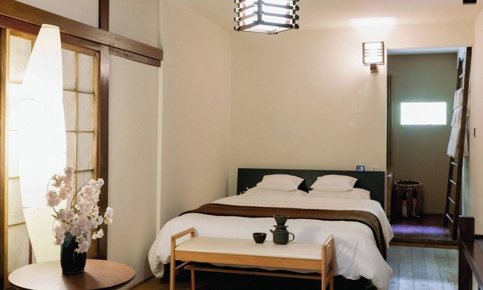 As you step inside the building you will find a modern Japanese space that matches modern life while making the most of the appearance of old Japanese houses such as thick wooden pillars beams and fittings / 1 queen bed