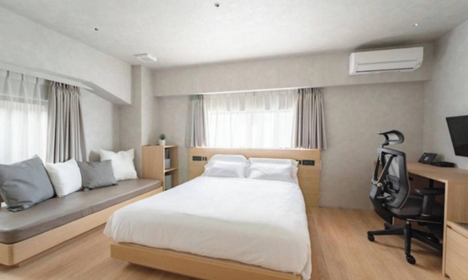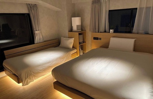 A hotel with a fullfledged private sauna and indooroutdoor air bathing located right next to Tenjin Station and with no facetoface contact