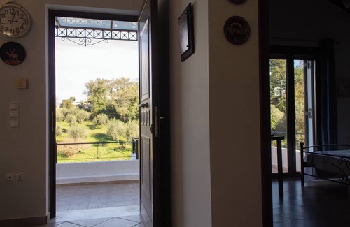 6 persons can stay in the 105 sq.m. space with 3 bedrooms, fully equipped kitchen, internal and external dinning spaces, living room, bathroom, large terraces and balcony with view to our olive trees estate, to Corfu bay and city and to the Achilleion palace. Free parking and internet WiFi connection. It is fully independent with a walking entrance from the parking through the staircase and the terrace.