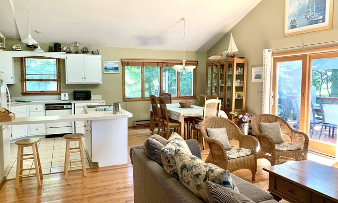 Enjoy our tranquil home in a private beach community.Located on a half acre of private land, this home has all the amenities you will need for a relaxing vacation or getaway. Views of Peconic Bay from the home, a private beach .Take advantage of Historic Greenport, located just 1 mile away, as well as the Ferry to Shelter Island and Sag Harbor, along with three restaurants just walking distance away.