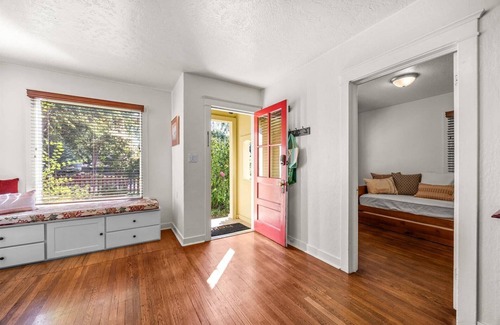 Step into the storybook charm of this North End corner cottage, where tree-lined streets and blooming gardens set the scene for your Boise escape. A wooden swing sways gently from the arms of a grand old maple tree, while grapevines and flowers fill the dog friendly fully fenced yard with color and delight.