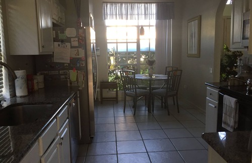 Home in quiet family neighborhood, 3 bedrooms plus a loft/office, 3 bathrooms. Downstairs is the master bedroom and bathroom, living room, dining room, kitchen, kitchenette, laundry room, bath and the garage. Upstairs are two bedrooms, a bathroom and the loft / office.