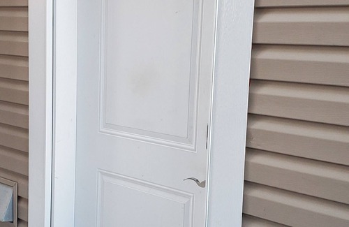 Please reach out to get a side entrance keyless entry lock code. So you can come and go as you please. Tap on the Schlage logo to activate the keypad. Pull the door outside while the lock disengages.