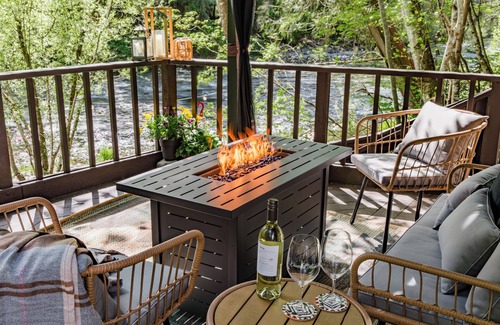 Step into a world of enchantment along the banks of the Snoqualmie River at our magical riverfront cabin. Unwind in the Adirondack chairs on the riverbank, letting the magic of our cabin whisk you away to a place of serene wonder and endless charm. Relax in your private hot tub under the starry sky or cozy up by the gas fireplace as the gentle melody of the river serenades you.
