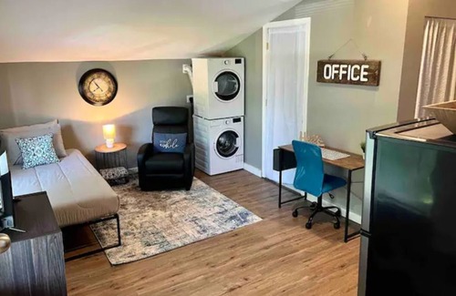 Right in Norway Center, 2nd Floor Loft Studio Apartment. Perfect for a traveler. Everything you need is provided including in-unit laundry for free. Parking in the driveway, Reliable Internet, Ac, and Heat control in the unit. Electronic Lock access. Tall Ceilings. Open Concept. Walking trail behind the large back yard.