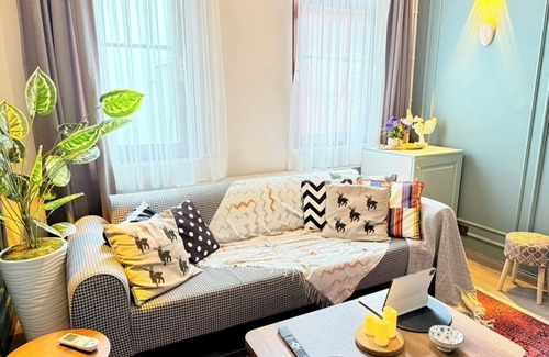 Just steps from Taksim Square, this peaceful 1-bedroom flat offers views of the Taksim Mosque from your window. Set on a quiet street in a building that blends Greek and modern architecture, it features high ceilings, a comfy double bed, and a cozy living space. Perfect for couples, solo travelers, or small families, it offers a calm atmosphere in a central location — just minutes from transport links, İstiklal Avenue, shopping spots, and major historical sites.