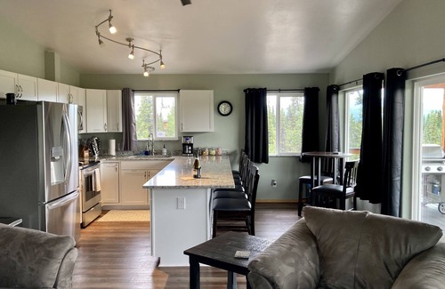 The living room has a sleeper sofa, love seat, end tables with lamps and a 65” High Definition Television. You’ll be able to enjoy watching a variety of specialty television apps as well as satellite television with local Alaskan channels so you can always be informed of the changing weather. With windows throughout the living room, kitchen and dining areas, a large ceiling fan will provide that fresh, open air feeling.