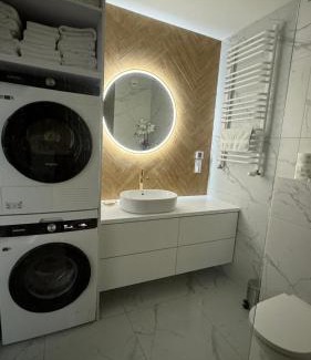 Nowoczesny Apartament Tatarska offers accommodations in Przemyśl, 21 miles from Orsetti House Museum. This property offers access to a balcony, free private parking, and free Wifi. Providing a terrace and garden views, the apartment includes 2 bedrooms, a living room, satellite flat-screen TV, an equipped kitchen, and 1 bathroom with a walk-in shower. Towels and bed linen are provided in the apartment. The property has an outdoor dining area. During the colder months, guests can enjoy winter sports in the surrounding area. Rzeszów-Jasionka Airport is 56 miles away.