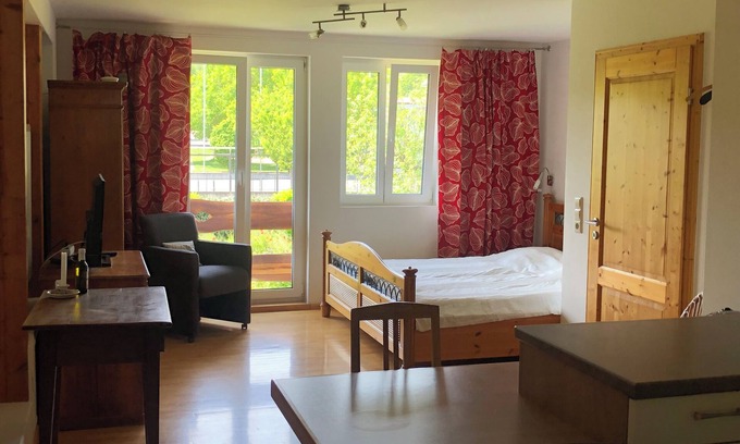 Die Ferienwohnung ist 35qm groß und befindet sich im 1.OG. Sie eignet sich für bis zu 2 Personen und verfügt über einen großen Wohn-Schlafraum mit Doppelbett und integrierter, gut eingerichteter Einbauküche, Badezimmer mit Dusche und WC. Neu sind der Fernseher, die Kaffeefiltermaschine und zusätzlich eine Padkaffeemaschine sowie ein sehr bequemer Sessel. Die Wohnung verfügt über einen separaten Eingang mit großem Vorraum und Abstellplatz.