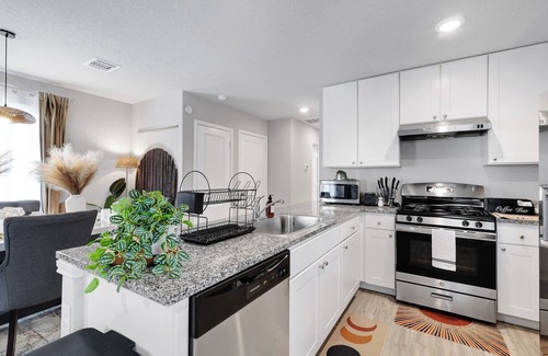 This home resides in a peaceful neighborhood. Should you need anything during your stay, with just a 5 to 10-minute drive, you'll find plenty of practical amenities such as supermarkets, gas stations, restaurants, gyms, and retail stores, for a more convenient stay.