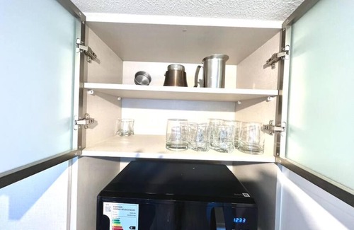Food & DrinkBottle of water, Tea/Coffee maker, Chocolate/CookiesBathroomToilet, Towels, Toilet paper, Shower, Bathtub or shower, Bathtub, Private bathroom, Free toiletries, HairdryerGeneralIron, Fire extinguisher, Key access, Ironing facilitiesKitchenDining table, Refrigerator, Kitchenette, Electric kettle, Toaster, Oven, Microwave, Cleaning products, Wine glasses, Kitchenware, Coffee machine, KitchenOutdoorsTerrace, Patio, BalconyMedia & TechnologyFlat-screen TV, Mobile hotspot device, Streaming service (like Netflix)ViewView, City view, Quiet street view, Sea viewLiving AreaDining areaBedroomWardrobe or closet, LinensAccessibilityEntire unit wheelchair accessible, Upper floors accessible by elevator, Accessible by elevator, Hearing accessibleBuilding CharacteristicsPrivate apartment in buildingRoom AmenitiesSocket near the bed |