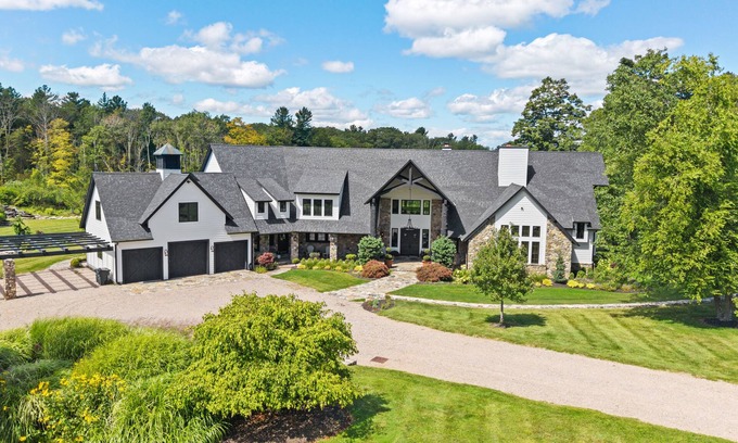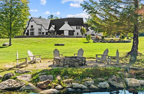 Welcome to Whispering Estate, a stunning country retreat set on 70 private, manicured acres in the heart of Litchfield County. Designed and built with the warmth of a Utah ski lodge in mind, this extraordinary estate blends rustic elegance with timeless romance. From the moment you enter the long, tree-lined drive, you are embraced by serenity, beauty, and complete privacy.