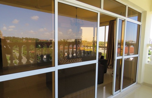What is truly unique about my home is it's unique architectural design with a bias for natural all-round lighting, let in by large floor to ceiling glass windows and sliding doors. It is also high enough (4th floor) to allow the natural breeze from the Indian Ocean to cool you down during the very hot seasons. At the roof top, there is an expansive view deck, accessed by all residents/guests, that has lovely views of the Indian Ocean. It has it's own washrooms so you don't have to interrupt your views by rushing back to your house to answer nature calls. There is also a swimming pool with free access to all guests and residents. The close proximity to premier shopping malls, restaurants, and the beach make this a sought-after location. The road leading to the apartment is paved, lined with trees and streetlights.