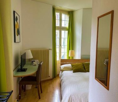 The charming Nydeck hotel at the east end of Bern's famous shopping lane offers you light and fully equipped rooms and superb views of the green hills and the Aare river. The Hotel Nydeck is located in the heart of the old town, only a few minutes' walk from the main station. The rooms feature comfortable easy chairs, parquet floors and bathrooms come with illuminated make-up mirrors. A continental breakfast is served every day. The Nydeck hotel's café bar Junkere with its inviting terrace is a well-known meeting place in Bern, where hotel guests from all around the world mingle with locals.