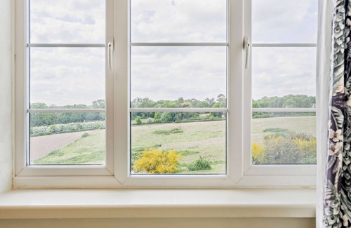 Escape the humdrum of everyday life in this peaceful bolthole in the quaint Suffolk village of Holbrook, 6 miles south of Ipswich. The pet-friendly cottage sleeps four guests, perfect for couples and small families who adore getting out and about. There are some fabulous walks to explore in and around the village, including along the banks of the River Stour and at Holbrook Creek. Further afield, visit the stunning Dedham Vale (10 miles) and the mesmerising landscapes of Constable Country. You’ll also be just 2 miles from Alton Water, with its network of walking and cycling routes. Water sports enthusiasts can enjoy sailing and windsurfing here too, and it’s a great spot for fishing and birdwatching. For a day at the seaside, journey to the charming coastal town of Felixstowe (16 miles). Stroll along the promenade, admire the floral displays at the seafront gardens, and eat ice creams on the long, sandy beach. Other popular days out from the property include the foodie haven of Suffolk Food Hall (3.5 miles) and the family favourite of Jimmy’s Farm and Wildlife Park (6 miles). The rural hideaway beautifully blends traditional furniture with contemporary decor and design. Large windows let in plenty of natural light, and frame relaxing views of the surrounding fields and forests. Inside, leave muddy walking shoes in the boot room, before heading through to the heart of the house – a spacious, open-plan lounge/kitchen/diner with sliding French doors opening onto the garden. This space is decorated in calming, natural tones and is the ideal spot to relax after a long, countryside walk. Rustle up delicious feasts using local ingredients in the stylish kitchen area and gather at the dining table to admire the far-reaching rural views before cosying up on the sofa in front of the roaring wood burner. Rounding off the ground floor is a stylish bathroom and a handy utility cupboard. Upstairs, two inviting bedrooms await, both featuring gorgeous, antique-style furniture and enjoying tranquil countryside views. You’ll also find a shower room on this level, along with a third room with a sofa and a lovely desk. Outside, the enclosed garden has a sunny patio area with outdoor furniture, and beyond that is a large lawn that’s perfect for playing outdoor games. The garden enjoys uninterrupted views across fields, forests, and the River Stour. Private parking for two cars.