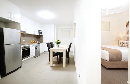 Featuring a garden, Oaks Moranbah Suites provides accommodations in Moranbah. The condo hotel features rooms with air conditioning, free private parking, and free Wifi. The condo hotel provides guests with a balcony, a seating area, cable flat-screen TV, a fully equipped kitchen with a dishwasher and an oven, and a private bathroom with shower and a hair dryer. A microwave, a toaster, and fridge are also available, as well as a kettle. At the condo hotel, units include bed linen and towels. Moranbah Airport is 4.3 miles from the property.