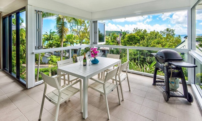 Comfortably accommodating up to six people, Oasis 1 is situated on the Western side of Hamilton Island, just a stone's throw away from the Hamilton Island Marina and the prestigious Hamilton Island Yacht Club. The vibrant Front Street, offering a delightful array of restaurants and shopping, is within walking distance. And for beach lovers, the stunning Catseye Beach is just a short ride away on your complimentary golf buggy.