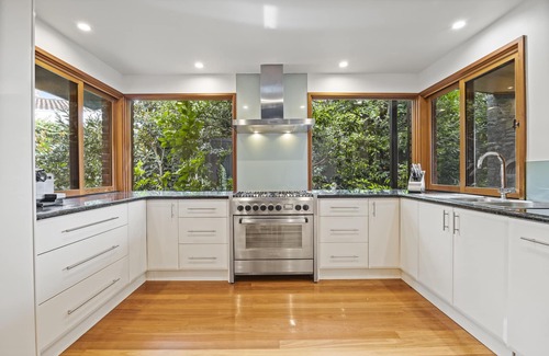 Enjoy the ambiance of this dog friendly (must confirm at time of booking) luxury executive retreat, whether it be relaxing on the huge deck, enjoying a swim or simply relaxing on a comfortable sofa with a good book.