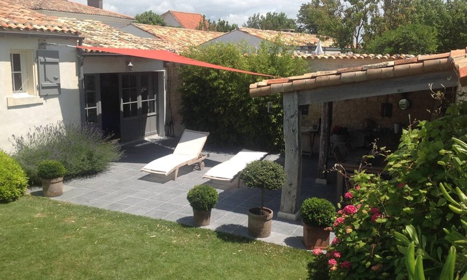 Completely renovated house (2012) typical Ile de Ré, in one of the most beautiful villages of France. This house is classified 4 stars, a guarantee of quality. Talmont sur Gironde, an ancient bastide founded by the King of England and Duke of Aquitaine, Edward I, in 1224, lies on a promontory overlooking the Gironde estuary. Talmont is considered as the capital of the hollyhock and also owes its fame to its Romanesque church of the XII century, a pure jewel camped on the edge of the cliff, formerly stage on the way of Saint Jacques de Compostelle.