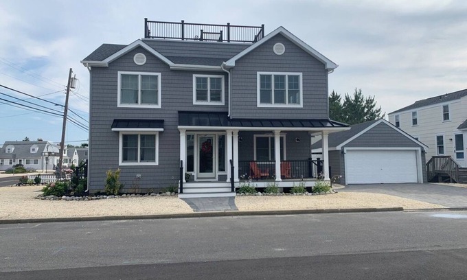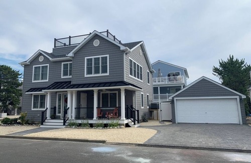 Nestled in Long Beach Township, this delightful house offers 5 bedrooms with a mix of first and second floor king, queen, and twin beds. With 3 bathrooms featuring a bathtub and hair dryer, guests can relax and unwind after a day of exploring. The property also includes amenities like AC, heating, WiFi, a washing machine/dryer, and an iron for convenience. Our place is equipped for both long or short stays to make your holiday one to remember. We are six houses to the beach, rooftop and second floor ocean and bay views! One block to the Acme, walking distance to ice cream shops and restauants.