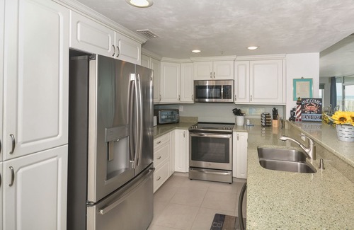 Ocean Condo 104 features WiFi, cable TV, stereo with Apple device docking station, tile throughout, full-size washer/dryer, items for the beach, and all of your linens are supplied. Free unlimited long-distance in the US, Canada, and Puerto Rico.
