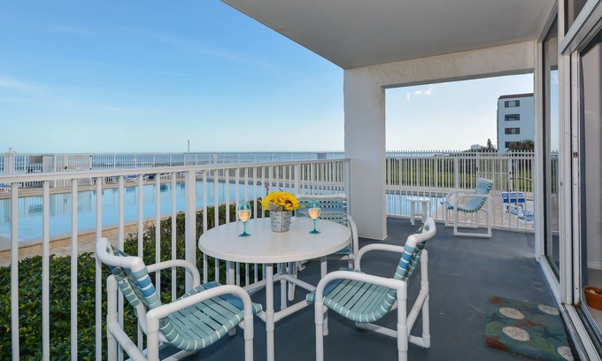 Ocean Condo 104 ~ Ground Floor Corner Condo with wrap around balcony! Walk right out to Pool! | Condo in New Smyrna Beach