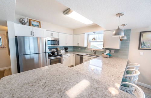 2br 2 bath in a 49 unit complex-all the comforts of home! Fully equip kitchen-King size bed in master bedroom, queen and 1 twin in second bedroom. Other units available. Enjoy swimming in the over sized heated pool situated on the ocean side. Also, bocce court, shuffle board and an exercise room. Restaurants and grocery store located across the street. Close to many Florida attractions!