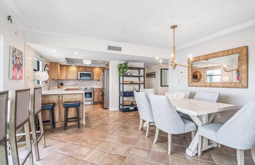 Two bedrooms, two bath condo, directly on the ocean! Five sliding doors open that lead to a private wrap around porch. Both bedrooms and living room (and even bathrooms) have incredible views of the ocean. Only 50 steps to the ocean! Sit and enjoy the sounds and sight of the ocean from the condo. New kitchen appliances, fully stocked kitchen and washer/dryer in the unit. Beach chairs, umbrella and beach toys stored on the patio. Perfect for couples and families. Peaceful, tranquil and stunning! Private and quiet beach, heated pool, walking distance to grocery store, playground, shopping, bars and restaurants.