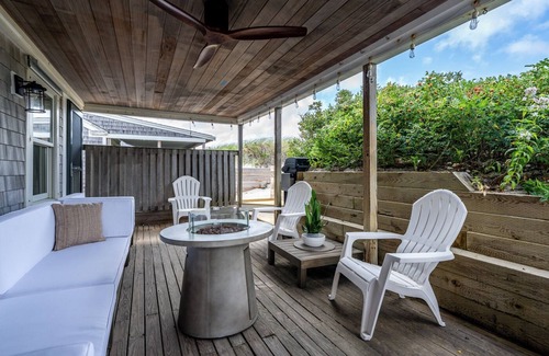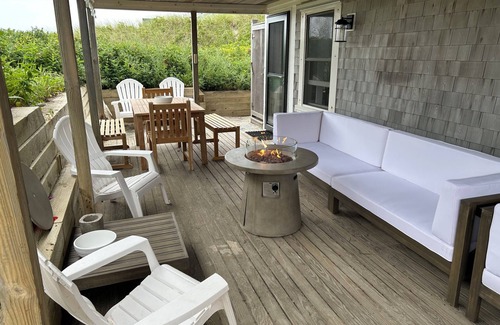 OWL House! Updated, sophisticated, “attention to detail” beach-front cottage. Sunny, airy vaulted living room. Second bedroom is a walk-up sleeping loft with skylight, views, and built in storage. Back porch provides an extension to the house, space to grill, eat and relax with privacy and protection from the weather. Enjoy the outdoor furniture, teak dining set, propane fire pit, cafe lights, and seasonal outdoor shower. The private beach is steps around the dune, camp fires are highly encouraged! 2 ornamental fireplaces, 2 flat screen Roku TV’s, games, oozes character and charm.