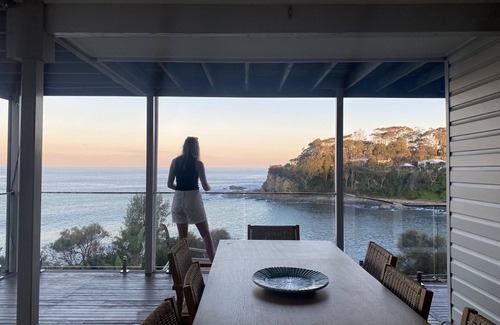 One of the best locations at Malua Bay with unbroken ocean views. Enjoy a stunning stay in spacious comfort and style which can accommodate up to 8 guests. Fabulous location all year round, a 1-2 minute ocean front walk to Garden Bay, a 5 minute walk to the popular Three66 café plus enjoy all that the south coast has to offer. Watch the whales from the front deck as they migrate north in the cooler months, and south with their calves as it starts to warm up towards summer.