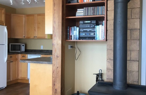 The Beach House is a self-contained exquisite retreat in a tranquil, peaceful setting. See panoramic views of morning sunrises and evening moons over the ocean from the comfort of your bed! Kitchen includes a stove, oven, fridge, dishwasher, and microwave. In the living room, a wood burning stove. Comfortable queen size bed and 3/4 bathroom. Full size deck with barbecue and outdoor fire pit. Enjoy outdoor dining on the ocean's edge observing the eagles, whales, and other wildlife at your front door. Only five miles (3 kilometers) from our local shopping area at Quathiaski Cove.