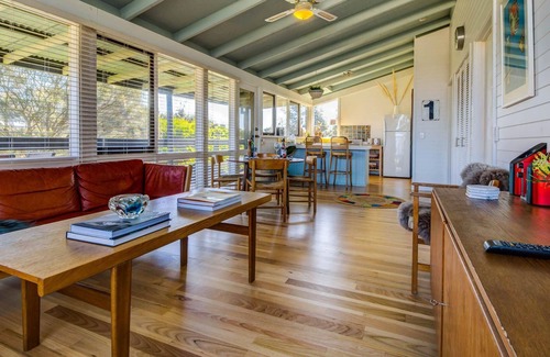 The home features a wholly sheltered outdoor living area with a Weber BBQ and furniture. There is a huge yard for the kids to run around in, ample off-street parking for your car and a boat, and a cold-water shower to wash off the sand after your fun day at the beach.