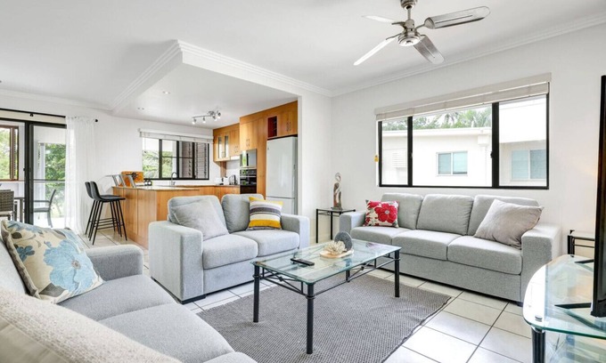 This stunning third-floor retreat in Yorkeys Knob offers the perfect coastal escape for up to 8 guests. Just moments from the beach, it features three bedrooms, two bathrooms, and a blend of comfort, elegance, and modern amenities.