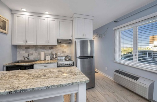 Enjoy a beach vacation in this Ocean theme studio apartment just minutes from the ocean—a perfect stay in the heart of downtown. Relax on the balcony, and take a soak in the tub in the spacious bathroom. Perfect for a couple to escape and enjoy quality time together.
