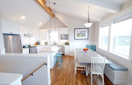 Our beautiful and charming home features a gorgeous vaulted ceiling with exposed wood beam, hardwood floors, wainscoting, crown moulding, slab granite counters in the kitchen as well as all bathrooms and wet bar. There are two fireplaces, two spacious decks with Ocean Views as well as a private hot tub with Ocean View.