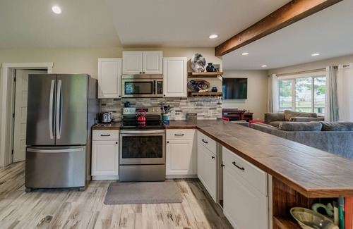 An Orcas oasis nestled in beautiful Eastsound. John and Katie's place is one of a kind on the Emerald Island. With stunning sunset views overlooking Cresent Beach, this vacation spot is sure to impress. The property is fully equipped from the spacious kitchen to the outdoor fire pit and a hot tub facing the ocean. With an acre of well maintained yard space- it's the perfect area for family games or opt to sit on the covered deck and read a book. Comfortable outdoor couches, propane fire table and an outdoor TV to enjoy sports with friends or movie nights with the kids! Come visit us and see what relaxation is all about!